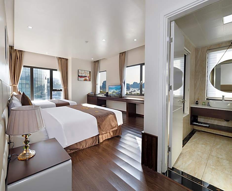 The spacious family room features air conditioning, a private entrance, a terrace with sea views as well as a private bathroom boasting a walk-in shower. The unit has 2 beds.